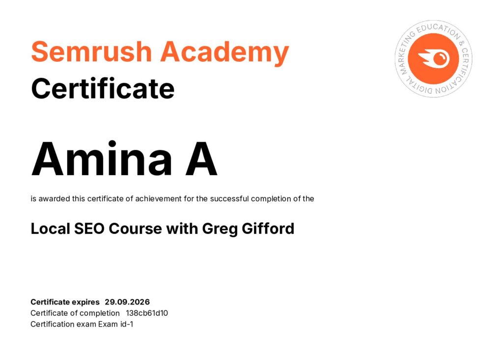 As a Best digital marketing strategist in Kasaragod I earned certifications from LinkedIn and SEMrush.